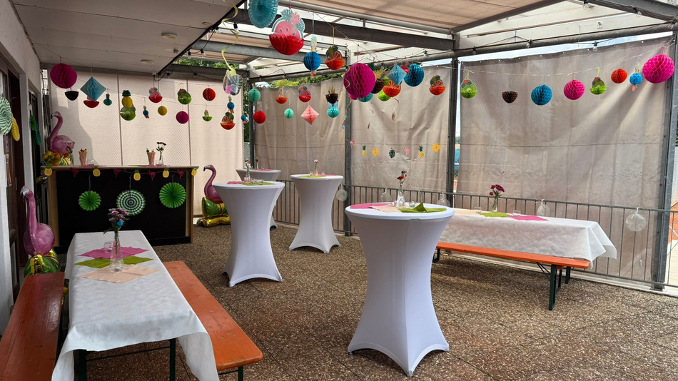Die liebevoll sommerlich gestaltete Dekoration sorgte für eine angenehme Atmosphäre. Für das leibliche Wohl war bestens gesorgt: Es gab eine große Auswahl an Salaten, frisch Gegrilltes und eine Cocktailbar mit erfrischenden Sommergetränken.